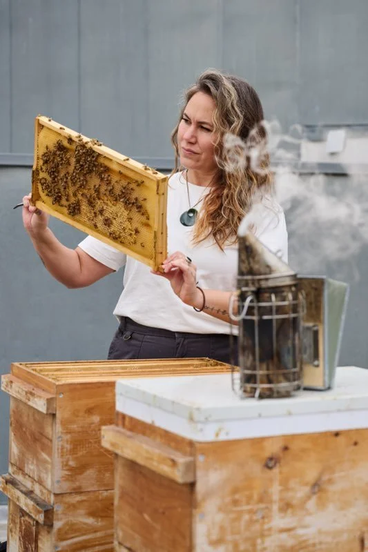 To her, beekeeping is far more than a skill, it’s a relationship. A sacred exchange between the bees, the land, and those attuned enough to listen. Her approach is one of humility and partnership, honouring the innate intelligence of the hive and embracing the teachings bees offer about balance, resilience, and interconnectedness.